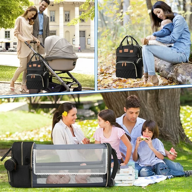 هذا المنتج عبارة عن حقيبة ظهر قابلة للفتح لتتحول الى سرير أطفال واسع و مريح، الحقيبة واسعة ومتعددة الوظائف. مثالية للسفر لأنها تشتمل على سرير أطفال كبير السعة والعديد من الميزات، مثل حقيبة الزجاجات العازلة للحرارة ونسيج قوي ومقاوم للماء وآمن للطفل أثناء النوم. كما أنها تأتي ببساط سميك ومساحة تخزين واسعة لتلبية جميع احتياجات السفر الخاصة بك.